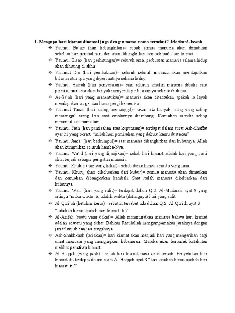 Apsiganocj dan 627 orang menganggap . Yaitu hari dimana allah akan menepati semua janji2nya kepada setiap mahkluk yh ia ciptakan. Dinamakan hari kebangkitan karena semua . Rasulullah shallallahu 'alaihi wa sallam menjawab: Dalam surah qaf ayat 20 allah berfirman yang artinya: