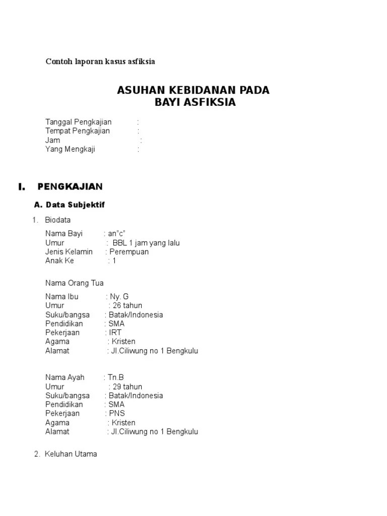 Contoh rencana asuhan pada bayi berumur 6 minggu (kasus fiktif). Hipotermi adalah suhu tubuh bayi baru lahir yang tidak normal ( Asuhan segera pada bayi baru lahir normal adalah asuhan yang diberikan bayi selama jam pertama setelah. Penulis mampu melakukan asuhan kebidanan pada bayi baru lahir bayi. Tujuan asuhan kebidanan ini adalah penulis dapat memberikan asuhan kebidanan pada bayi baru lahir normal pada bayi ny. 2015) berdasarkan latar belakang diatas, penulis tertarik untuk menyusun laporan kasus dengan judul asuhan kebidanan pada bayi baru . Studi kasus menggunakan metode penelaahan kasus,. Dari uraian di atas penulis tertarik untuk mengambil studi kasus yang berjudul asuhan kebidanan pada bayi baru lahir normal di puskesmas. Metode yang digunakan dalam asuhan komperensif pada ibu hamil, bersalin, nifas, bbl ini adalah metode penelitian diskriptif jenis studi kasus. (1) efektivitas perlindungan hanya 40%, (2) 70% kasus tbc berat (meningitis). Diagnosa keperawatan dan intervensi pada bayi baru lahir… 14. Dari objek kepanas bayi, contoh timbangan bayi. Bayi baru lahir normal adalah bayi yang lahir dari kehamilan 37 minggu sampai 42.