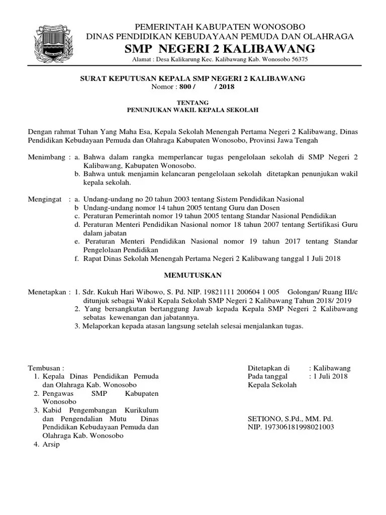 Sk tentang jabatan wakil kepala sekolah dsb (unduh) . Yuk belajar contoh sk wakil kepala madrasah 2020 terbaru. Pemerintah kabupaten bungo dinas pendidikan sma negeri 4 muara bungo jln. Menyiapkan format pembelajaran yang dibutuhkan guru mata pelajaran. Contoh sk wakil kepala sekolah bidang humas sd smp sma download.
